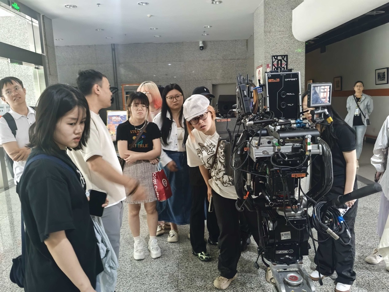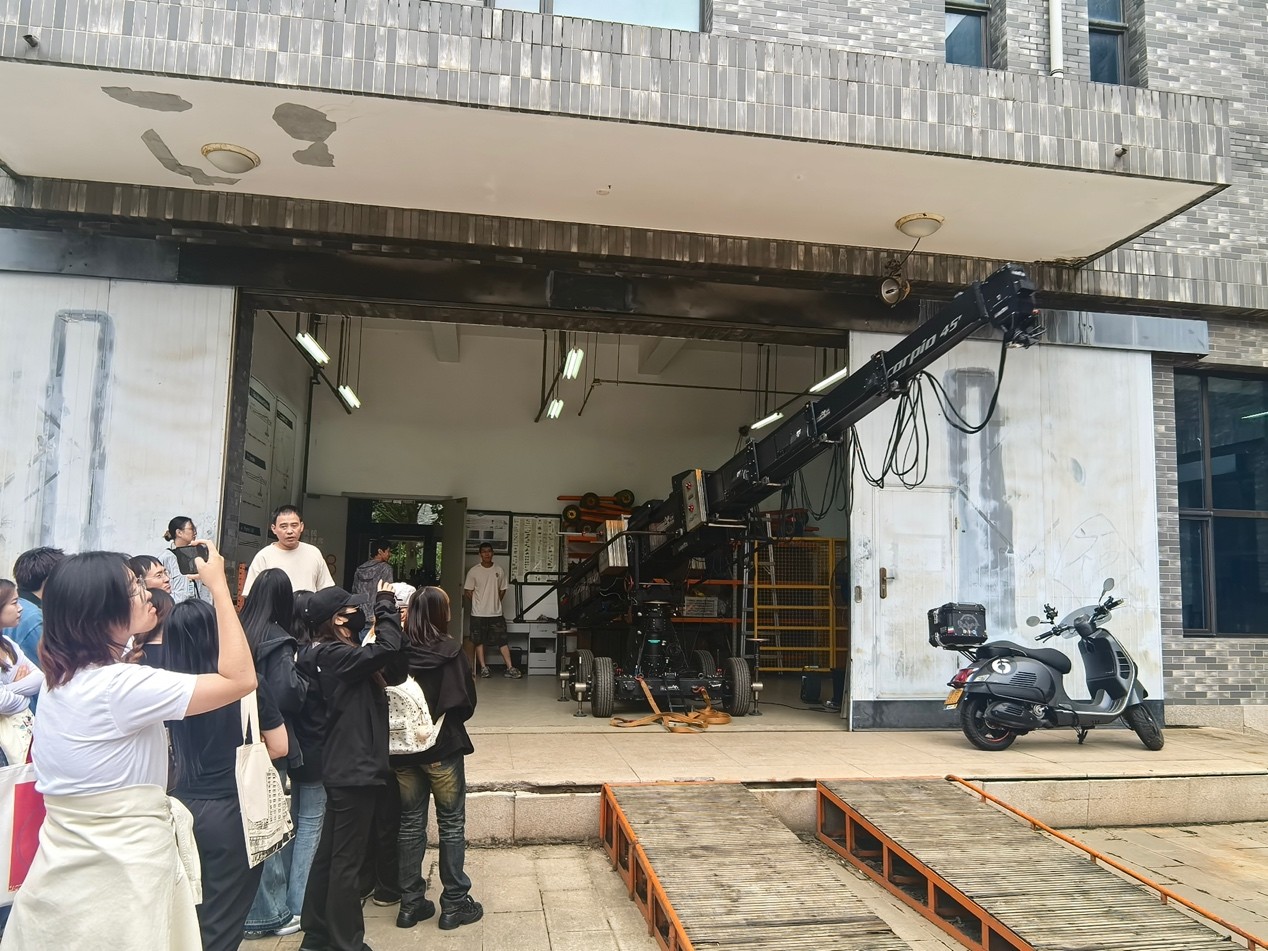 在移动设备与特殊器材拍摄区,同学们发出阵阵惊叹。这里展示了诸如伸缩炮等用于完成复杂运动镜头的重型装备。让大家明白了那些令人叹为观止的炫酷镜头是如何在技术的支撑下得以实现的。